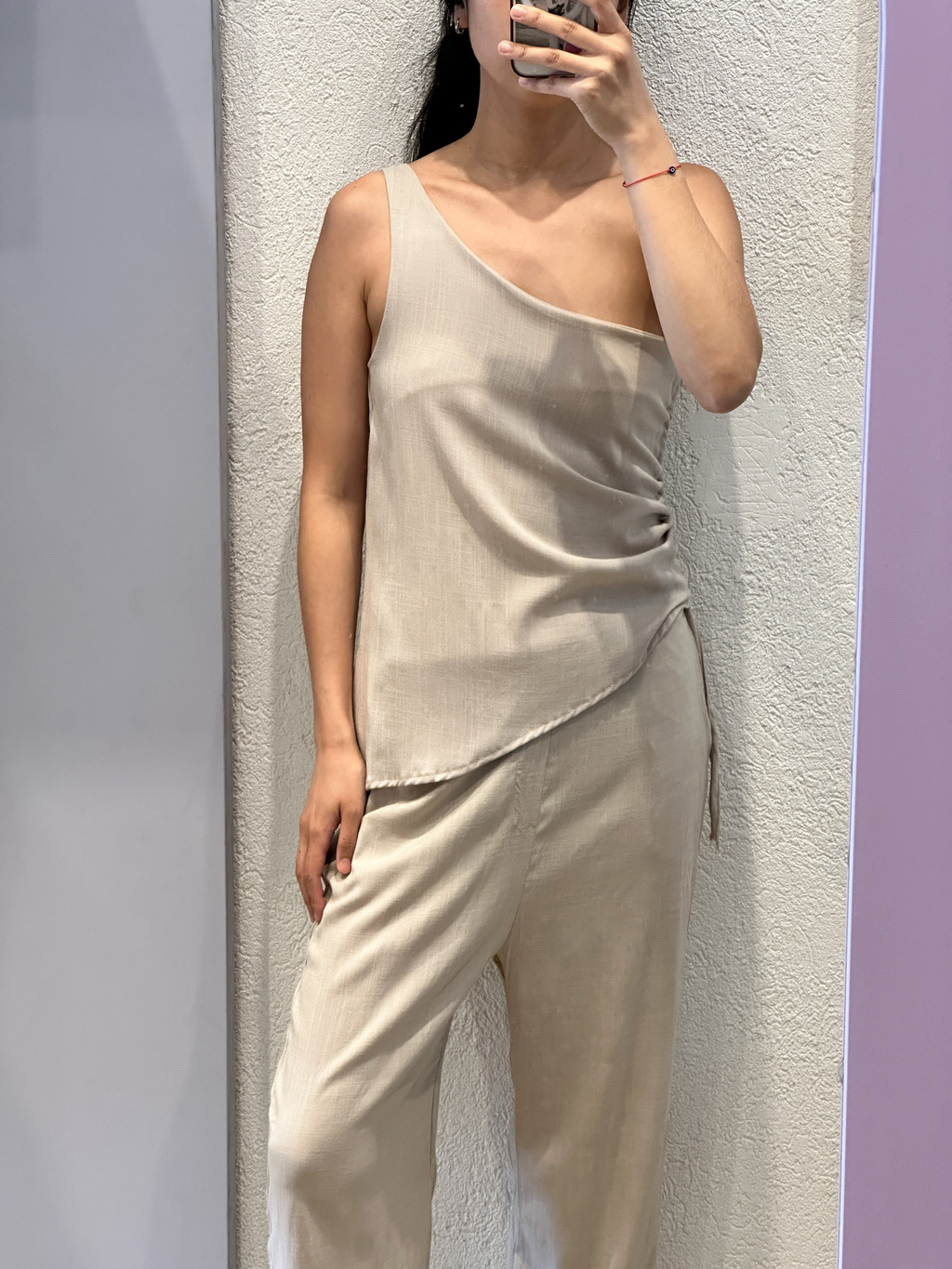 La modelo lleva puesto un talle S (1) junto con el Top Gemma en tono cemento.